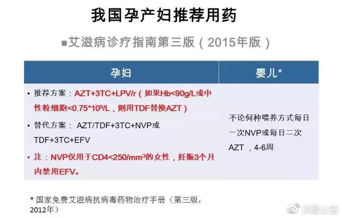 在国家免费抗病毒药物中,只有依非韦仑理论上对胎儿有致畸作用,所以如果想怀孕的话,在没有进行抗病毒治疗的情况下,建议女性感染者不用使用依非韦仑,而是首选克力芝,CD4在250以下的情况下可以考虑使用奈韦拉平。而其他的抗病毒药物基本对于胎儿没有影响。而针对已经稳定服用抗病毒药物一段时间的女性感染者,现在建议即使使用了依非韦仑的药物组合,也不要轻易的更换,因为来回更换导致的耐药风险远远大于可能的胎儿畸形的概率。